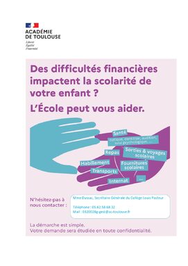 Par Sandrine Dussac-Montagnol, publié le mardi 7 novembre 2023 12:24 - Mis à jour le lundi 29 septembre 2025 11:26Le fonds social est destiné à faire face rapidement à des situations difficiles que peuvent connaître des familles de collégiens pour assumer les dépenses de scolarité et de vie scolaire. -